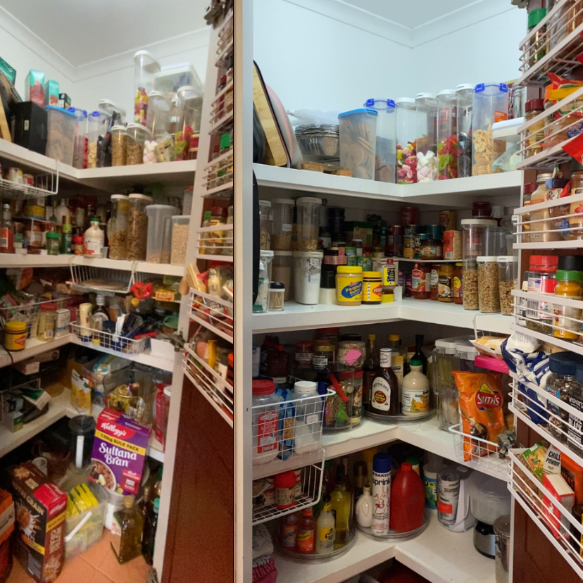 Working with the storage already in place, we cleared expired items and reorganised what remained for a pantry that finally makes sense.