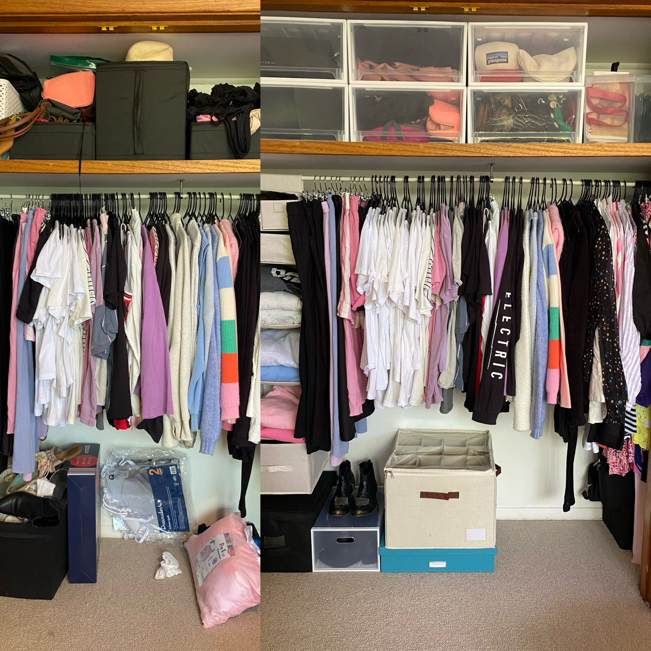 We decluttered and reorganised the wardrobe to create a calm, functional space that’s easy to maintain.