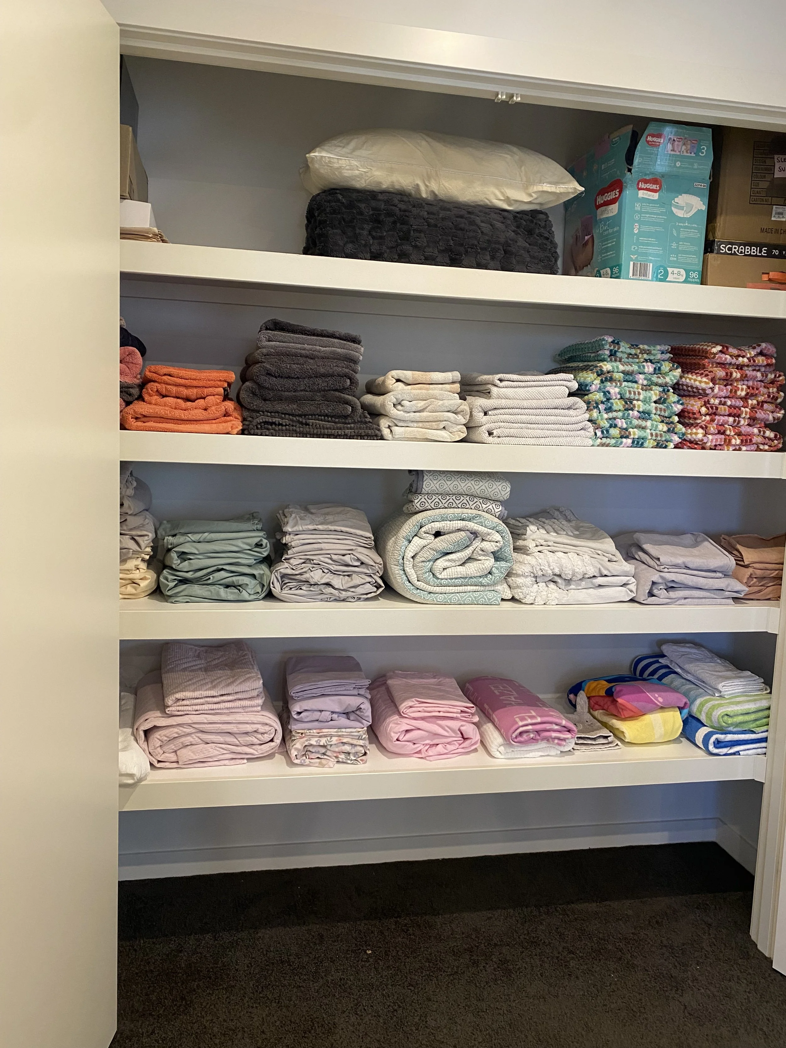 What was once an overstuffed, chaotic space is now beautifully organised, practical, and easy to maintain. Eve has an incredible eye for detail and created a system that not only looks amazing but actually works for everyday life. I can now find everything instantly — no more towels toppling over or hunting for matching bedding!
